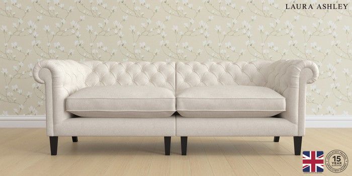 7.2.6 Buy Penarth by Laura Ashley 4 Seater Sofa Anneliese Oyster Natural Straight Mid - Black from the Next UK online shop Click here to use our accessible website