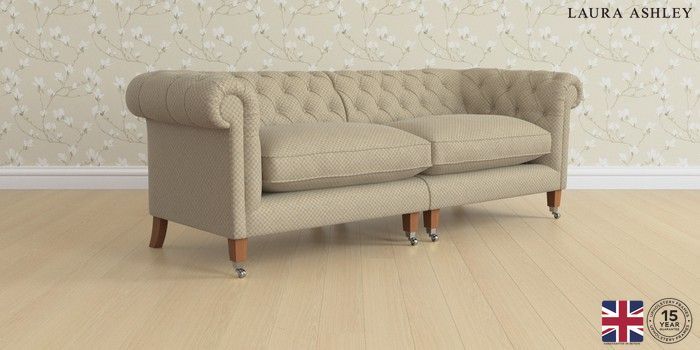 6.12.1 Buy Penarth by Laura Ashley 4 Seater Sofa Chequers Hazelnut Natural Straight Chrome Castor - Teak from the Next UK online shop Click here to use our accessible website