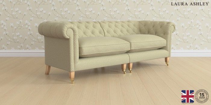 6.12.1 Buy Penarth by Laura Ashley 4 Seater Sofa Chequers Hedgerow Green Straight Brass Castor - Light Oak from the Next UK online shop Click here to use our accessible website