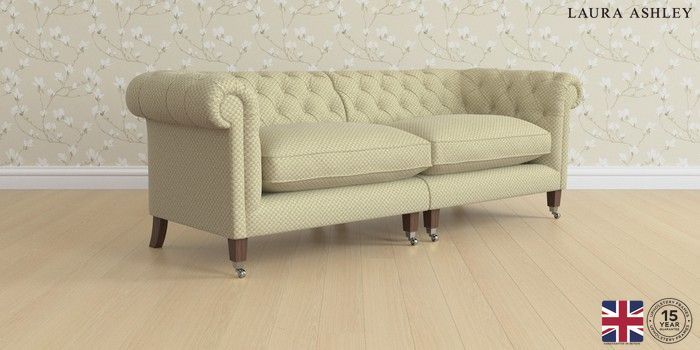 6.12.1 Buy Penarth by Laura Ashley 4 Seater Sofa Chequers Hedgerow Green Straight Chrome Castor - Chestnut from the Next UK online shop Click here to use our accessible website