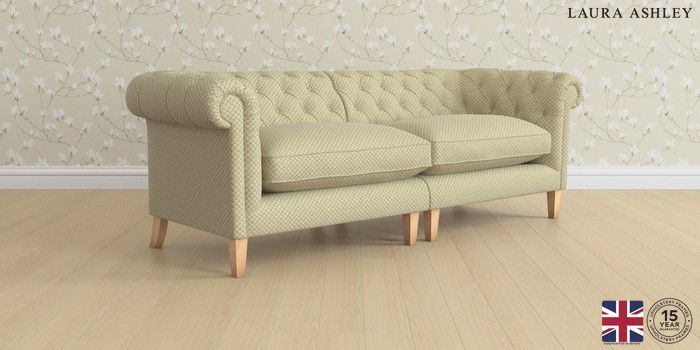 6.12.1 Buy Penarth by Laura Ashley 4 Seater Sofa Chequers Hedgerow Green Straight Mid - Light Oak from the Next UK online shop Click here to use our accessible website
