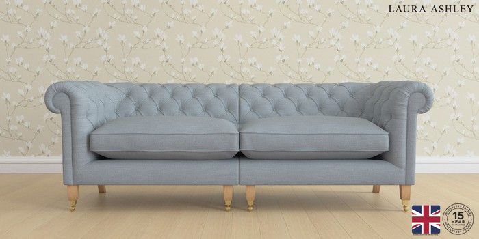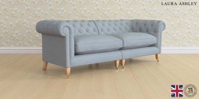 6.12.1 Buy Penarth by Laura Ashley 4 Seater Sofa Kinsham Seaspray Blue Straight Brass Castor - Light Oak from the Next UK online shop Click here to use our accessible website