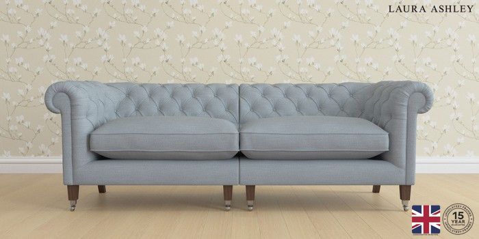 6.12.1 Buy Penarth by Laura Ashley 4 Seater Sofa Kinsham Seaspray Blue Straight Chrome Castor - Chestnut from the Next UK online shop Click here to use our accessible website