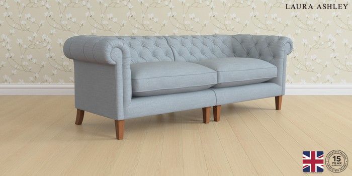 6.12.1 Buy Penarth by Laura Ashley 4 Seater Sofa Kinsham Seaspray Blue Straight Mid - Teak from the Next UK online shop Click here to use our accessible website