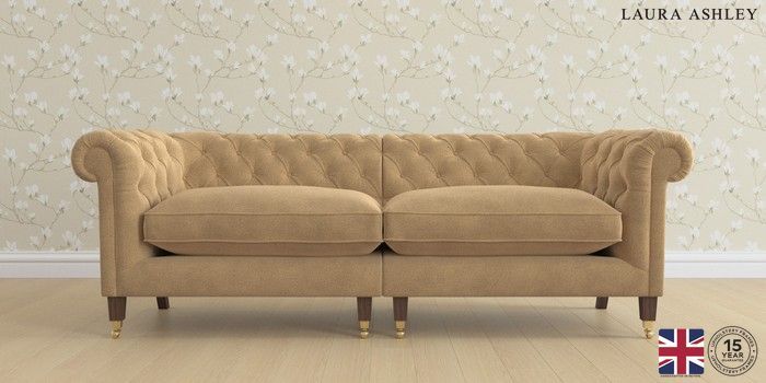 6.12.1 Buy Penarth by Laura Ashley 4 Seater Sofa Lundar Chenille Caramel Natural Straight Brass Castor - Chestnut from the Next UK online shop Click here to use our accessible website
