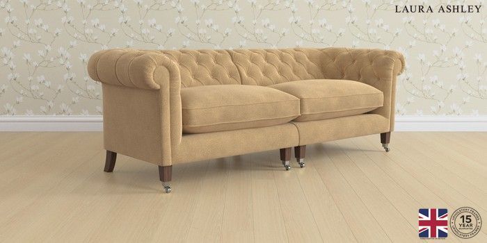 6.12.1 Buy Penarth by Laura Ashley 4 Seater Sofa Lundar Chenille Caramel Natural Straight Chrome Castor - Chestnut from the Next UK online shop Click here to use our accessible website