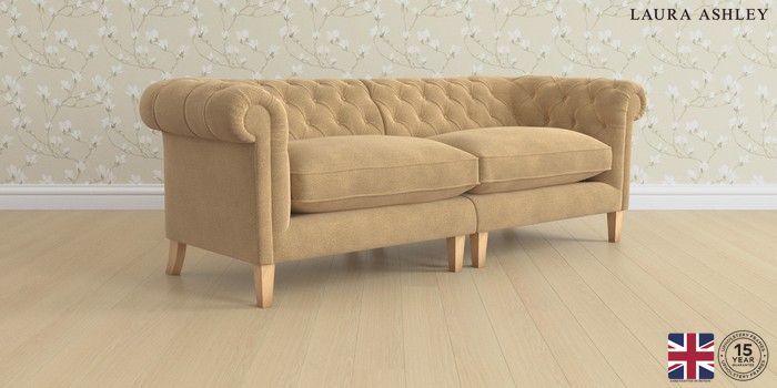 6.12.1 Buy Penarth by Laura Ashley 4 Seater Sofa Lundar Chenille Caramel Natural Straight Mid - Light Oak from the Next UK online shop Click here to use our accessible website