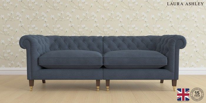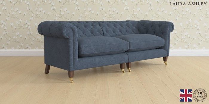 6.12.1 Buy Penarth by Laura Ashley 4 Seater Sofa Lundar Chenille Navy Blue Straight Brass Castor - Chestnut from the Next UK online shop Click here to use our accessible website