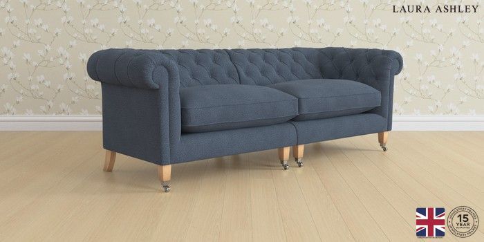 6.12.1 Buy Penarth by Laura Ashley 4 Seater Sofa Lundar Chenille Navy Blue Straight Chrome Castor - Light Oak from the Next UK online shop Click here to use our accessible website