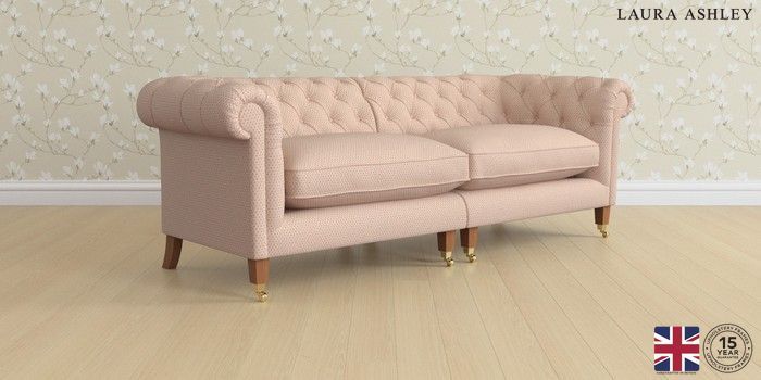 6.12.1 Buy Penarth by Laura Ashley 4 Seater Sofa Melbreak Geo Chalk Pink Straight Brass Castor - Teak from the Next UK online shop Click here to use our accessible website
