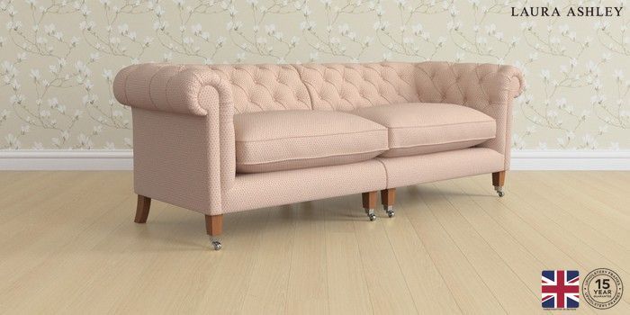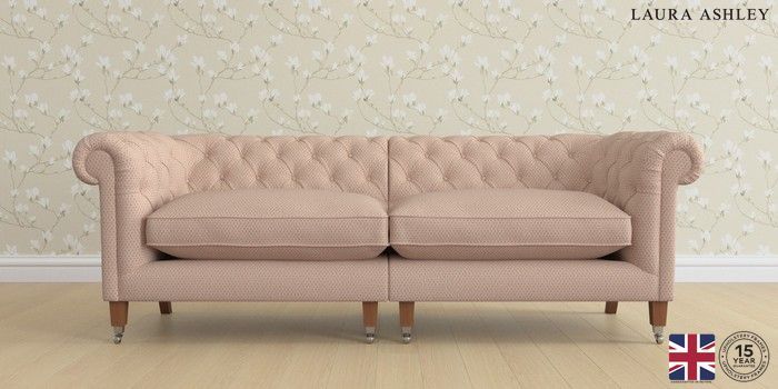 6.12.1 Buy Penarth by Laura Ashley 4 Seater Sofa Melbreak Geo Chalk Pink Straight Chrome Castor - Teak from the Next UK online shop Click here to use our accessible website