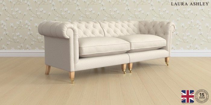 6.12.1 Buy Penarth by Laura Ashley 4 Seater Sofa Melbreak Geo Light Natural Straight Brass Castor - Light Oak from the Next UK online shop Click here to use our accessible website