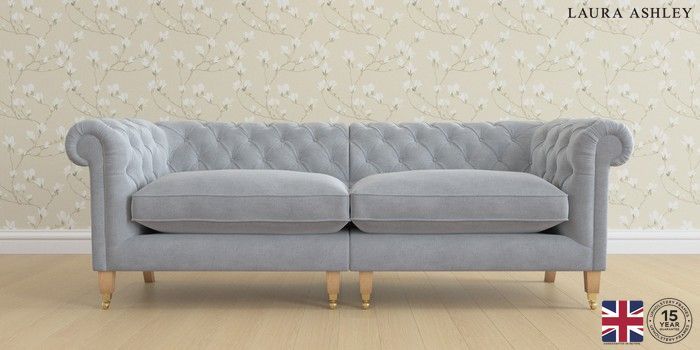 6.12.1 Buy Penarth by Laura Ashley 4 Seater Sofa Peyton Powder Blue Straight Brass Castor - Light Oak from the Next UK online shop Click here to use our accessible website
