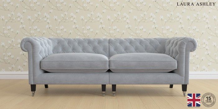 6.12.1 Buy Penarth by Laura Ashley 4 Seater Sofa Peyton Powder Blue Straight Chrome Castor - Black from the Next UK online shop Click here to use our accessible website