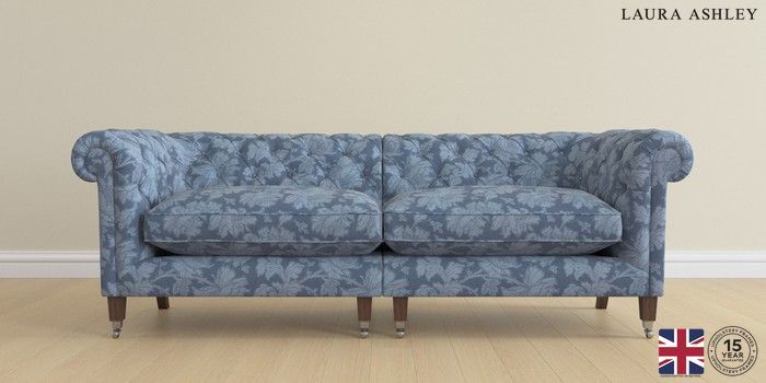6.12.1 Buy Penarth by Laura Ashley 4 Seater Sofa Tamara Dusky Seaspray Blue Straight Chrome Castor - Chestnut from the Next UK online shop Click here to use our accessible website