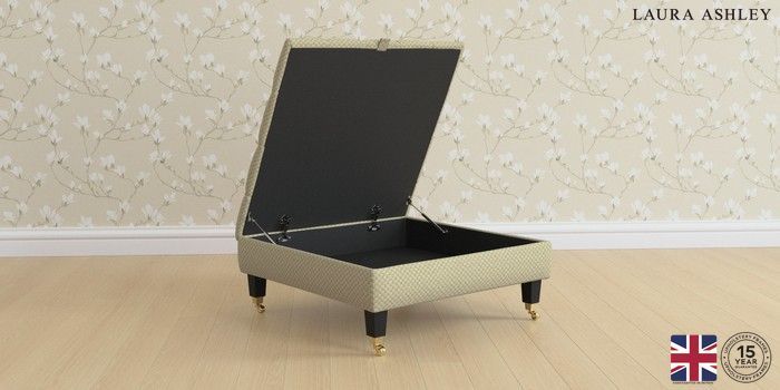 7.2.6 Buy Penarth by Laura Ashley Extra Large Storage Footstool Chequers Hedgerow Green Straight Brass Castor - Black from the Next UK online shop Click here to use our accessible website