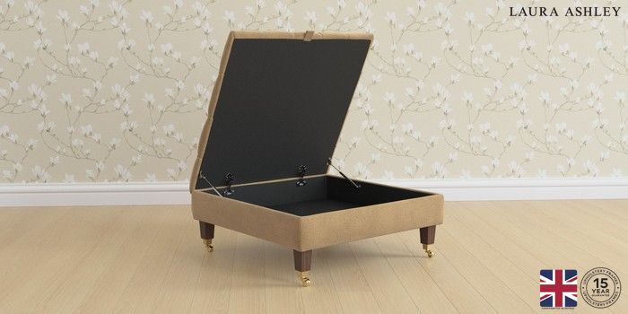 7.2.6 Buy Penarth by Laura Ashley Extra Large Storage Footstool Lundar Chenille Caramel Natural Straight Brass Castor - Chestnut from the Next UK online shop Click here to use our accessible website