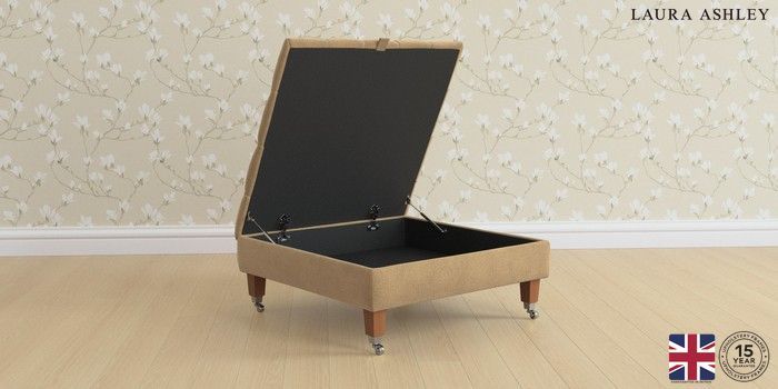 7.2.6 Buy Penarth by Laura Ashley Extra Large Storage Footstool Lundar Chenille Caramel Natural Straight Chrome Castor - Teak from the Next UK online shop Click here to use our accessible website