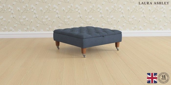 6.12.1 Buy Penarth by Laura Ashley Extra Large Storage Footstool Lundar Chenille Navy Blue Straight Chrome Castor - Teak from the Next UK online shop Click here to use our accessible website