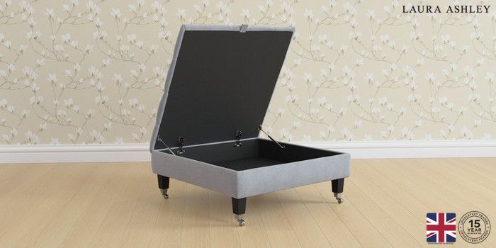 7.2.6 Buy Penarth by Laura Ashley Extra Large Storage Footstool Peyton Powder Blue Straight Chrome Castor - Black from the Next UK online shop Click here to use our accessible website