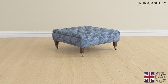 6.12.1 Buy Penarth by Laura Ashley Extra Large Storage Footstool Tamara Dusky Seaspray Blue Straight Chrome Castor - Chestnut from the Next UK online shop Click here to use our accessible website