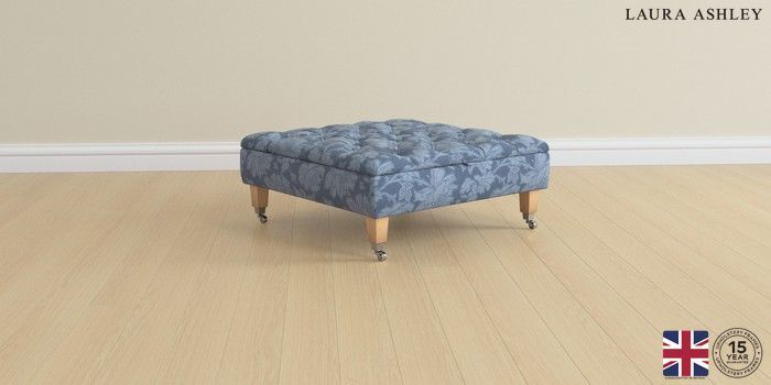 6.12.1 Buy Penarth by Laura Ashley Extra Large Storage Footstool Tamara Dusky Seaspray Blue Straight Chrome Castor - Light Oak from the Next UK online shop Click here to use our accessible website