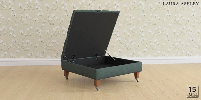 6.12.1 Buy Penarth by Laura Ashley Extra Large Storage Footstool Wooton Forest Green Straight Chrome Castor - Teak from the Next UK online shop Click here to use our accessible website