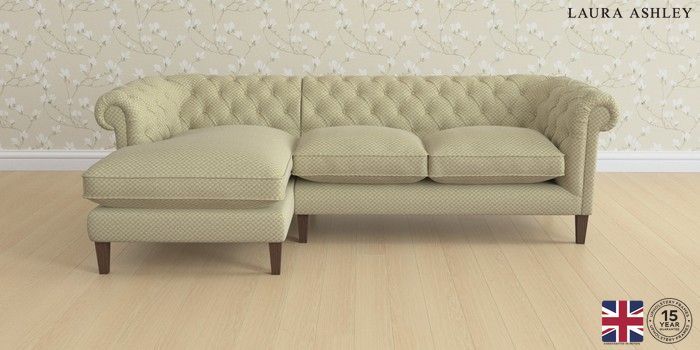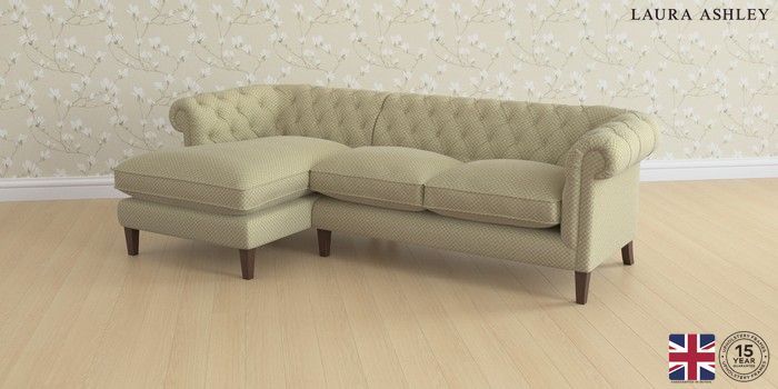 6.12.1 Buy Penarth by Laura Ashley Medium Sofa Chaise - Left Hand Chequers Hedgerow Green Straight Mid - Chestnut from the Next UK online shop Click here to use our accessible website
