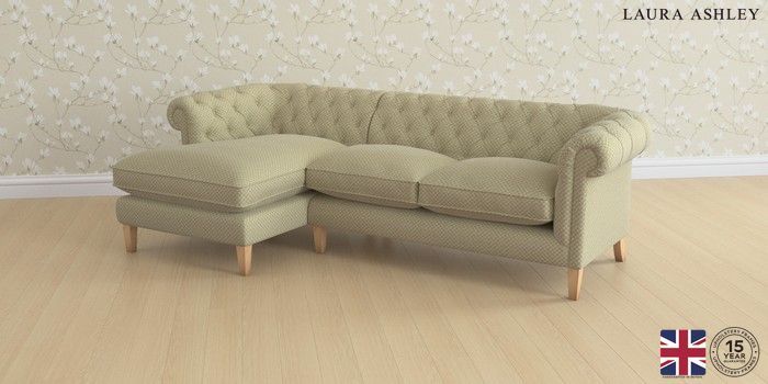6.12.1 Buy Penarth by Laura Ashley Medium Sofa Chaise - Left Hand Chequers Hedgerow Green Straight Mid - Light Oak from the Next UK online shop Click here to use our accessible website