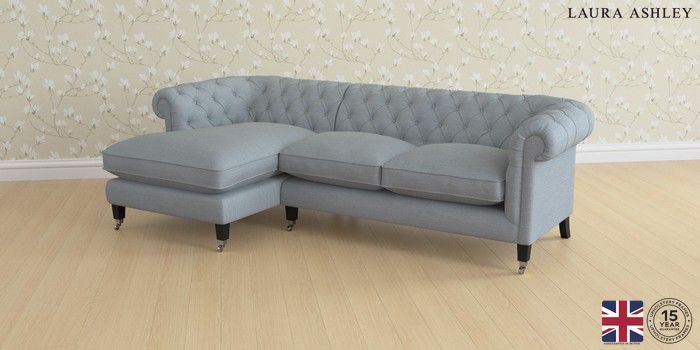 6.12.1 Buy Penarth by Laura Ashley Medium Sofa Chaise - Left Hand Kinsham Seaspray Blue Straight Chrome Castor - Black from the Next UK online shop Click here to use our accessible website