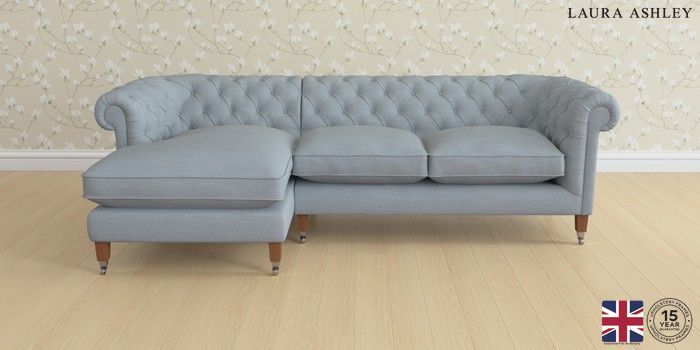 6.12.1 Buy Penarth by Laura Ashley Medium Sofa Chaise - Left Hand Kinsham Seaspray Blue Straight Chrome Castor - Teak from the Next UK online shop Click here to use our accessible website