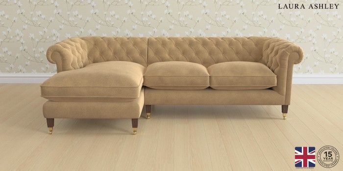 6.12.1 Buy Penarth by Laura Ashley Medium Sofa Chaise - Left Hand Lundar Chenille Caramel Natural Straight Brass Castor - Chestnut from the Next UK online shop Click here to use our accessible website