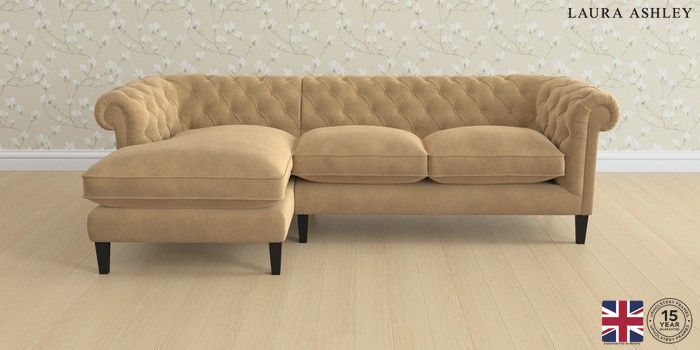 6.12.1 Buy Penarth by Laura Ashley Medium Sofa Chaise - Left Hand Lundar Chenille Caramel Natural Straight Mid - Black from the Next UK online shop Click here to use our accessible website