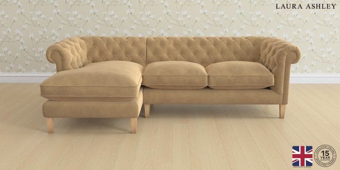 6.12.1 Buy Penarth by Laura Ashley Medium Sofa Chaise - Left Hand Lundar Chenille Caramel Natural Straight Mid - Light Oak from the Next UK online shop Click here to use our accessible website
