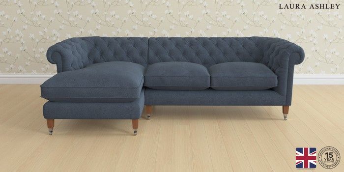 6.12.1 Buy Penarth by Laura Ashley Medium Sofa Chaise - Left Hand Lundar Chenille Navy Blue Straight Chrome Castor - Teak from the Next UK online shop Click here to use our accessible website
