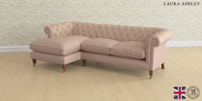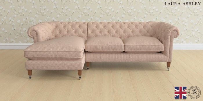 6.12.1 Buy Penarth by Laura Ashley Medium Sofa Chaise - Left Hand Melbreak Geo Chalk Pink Straight Chrome Castor - Teak from the Next UK online shop Click here to use our accessible website