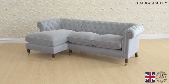 6.12.1 Buy Penarth by Laura Ashley Medium Sofa Chaise - Left Hand Peyton Powder Blue Straight Brass Castor - Chestnut from the Next UK online shop Click here to use our accessible website