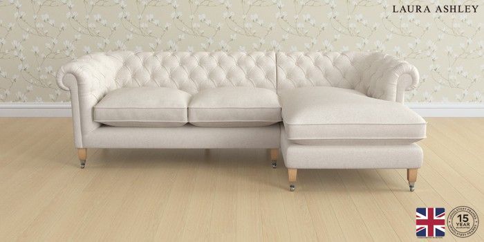 7.2.6 Buy Penarth by Laura Ashley Medium Sofa Chaise - Right Hand Anneliese Oyster Natural Straight Chrome Castor - Light Oak from the Next UK online shop Click here to use our accessible website