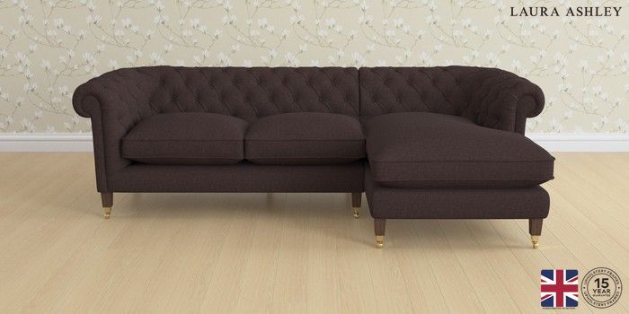 7.0.3 Buy Penarth by Laura Ashley Medium Sofa Chaise - Right Hand Bainton Chocolate Brown Straight Brass Castor - Chestnut from the Next UK online shop Click here to use our accessible website