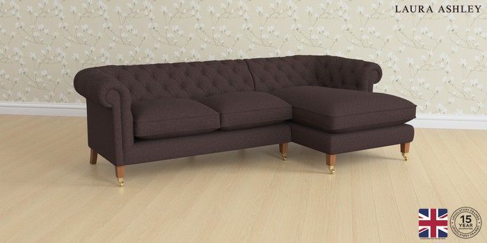 7.0.3 Buy Penarth by Laura Ashley Medium Sofa Chaise - Right Hand Bainton Chocolate Brown Straight Brass Castor - Teak from the Next UK online shop Click here to use our accessible website
