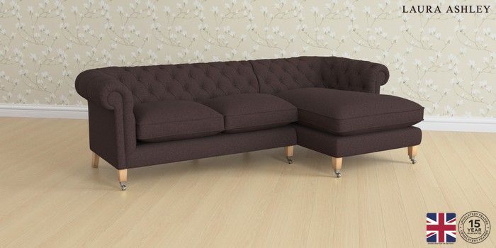 7.0.3 Buy Penarth by Laura Ashley Medium Sofa Chaise - Right Hand Bainton Chocolate Brown Straight Chrome Castor - Light Oak from the Next UK online shop Click here to use our accessible website