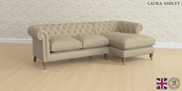 6.12.1 Buy Penarth by Laura Ashley Medium Sofa Chaise - Right Hand Chequers Hazelnut Natural Straight Chrome Castor - Teak from the Next UK online shop Click here to use our accessible website