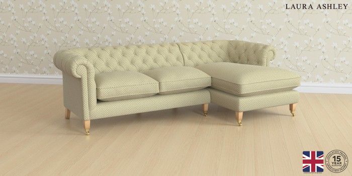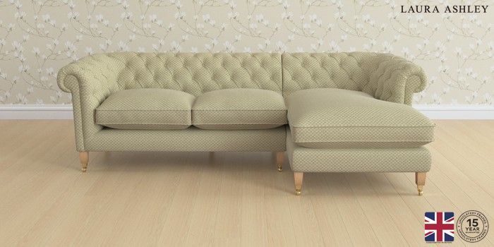 6.12.1 Buy Penarth by Laura Ashley Medium Sofa Chaise - Right Hand Chequers Hedgerow Green Straight Brass Castor - Light Oak from the Next UK online shop Click here to use our accessible website