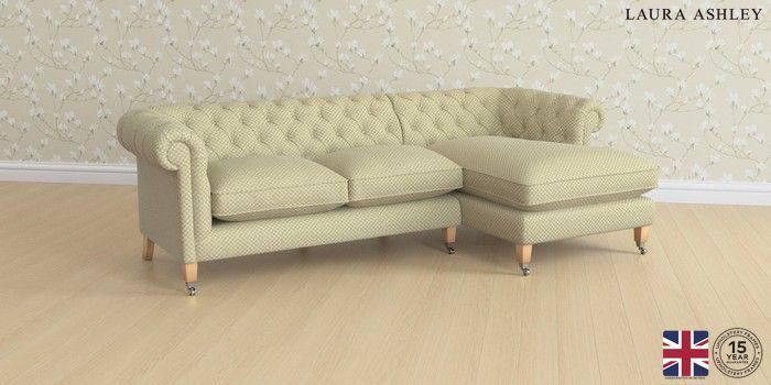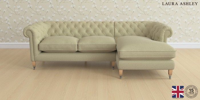 6.12.1 Buy Penarth by Laura Ashley Medium Sofa Chaise - Right Hand Chequers Hedgerow Green Straight Chrome Castor - Light Oak from the Next UK online shop Click here to use our accessible website