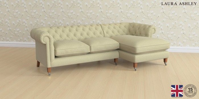 6.12.1 Buy Penarth by Laura Ashley Medium Sofa Chaise - Right Hand Chequers Hedgerow Green Straight Chrome Castor - Teak from the Next UK online shop Click here to use our accessible website
