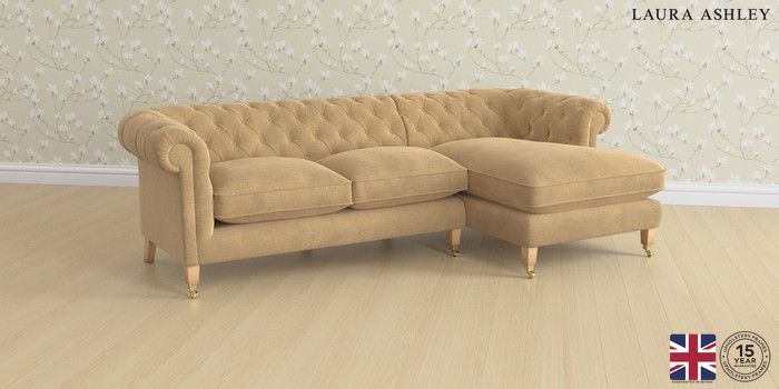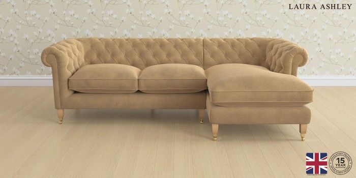 6.12.1 Buy Penarth by Laura Ashley Medium Sofa Chaise - Right Hand Lundar Chenille Caramel Natural Straight Brass Castor - Light Oak from the Next UK online shop Click here to use our accessible website