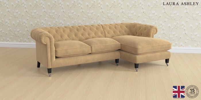 6.12.1 Buy Penarth by Laura Ashley Medium Sofa Chaise - Right Hand Lundar Chenille Caramel Natural Straight Chrome Castor - Black from the Next UK online shop Click here to use our accessible website