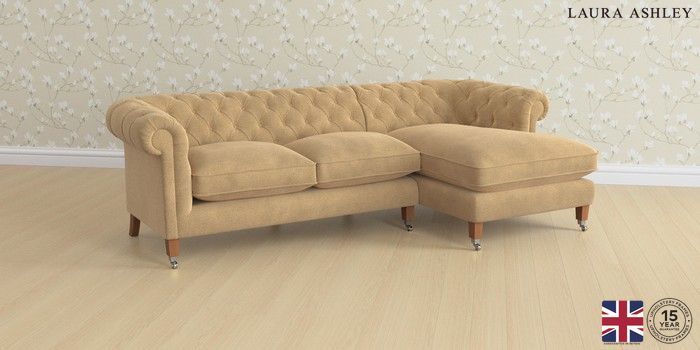 6.12.1 Buy Penarth by Laura Ashley Medium Sofa Chaise - Right Hand Lundar Chenille Caramel Natural Straight Chrome Castor - Teak from the Next UK online shop Click here to use our accessible website
