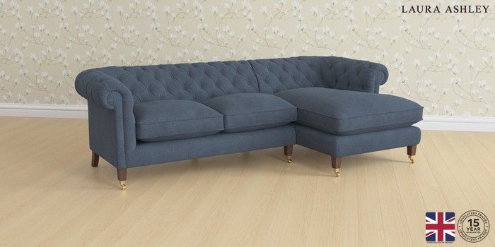 6.12.1 Buy Penarth by Laura Ashley Medium Sofa Chaise - Right Hand Lundar Chenille Navy Blue Straight Brass Castor - Chestnut from the Next UK online shop Click here to use our accessible website