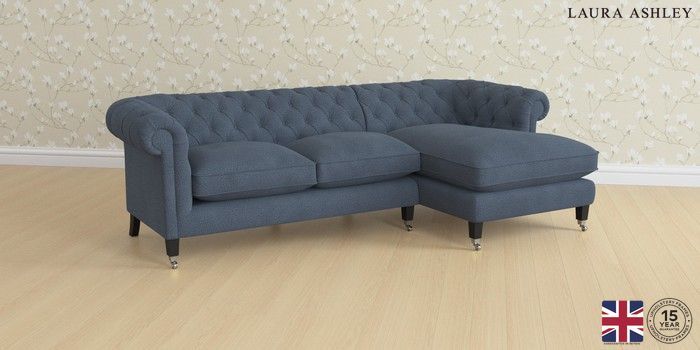 6.12.1 Buy Penarth by Laura Ashley Medium Sofa Chaise - Right Hand Lundar Chenille Navy Blue Straight Chrome Castor - Black from the Next UK online shop Click here to use our accessible website
